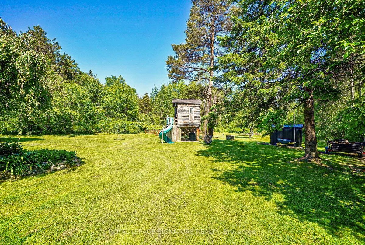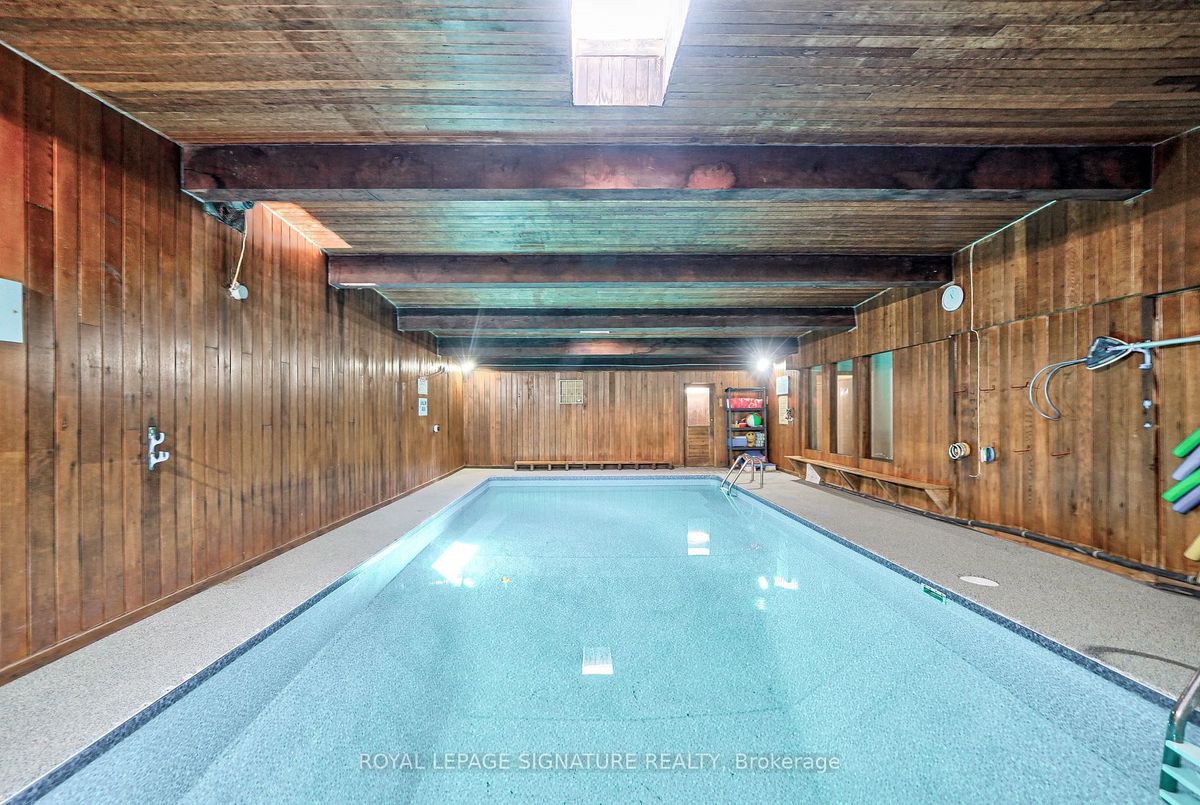 Step into more than 4,000 sq. ft. of renovated luxury on a private 1-acre lot complete with an indoor pool and commercial zoning for incredible future potential. This ranch-style bungalow wows with an open-concept design, beamed high ceilings, and a custom kitchen featuring quartz countertops. The great room steals the show with a custom stone surround and cozy wood stove, while the layout offers 3 bedrooms and 3 bathrooms, including an updated 3-pc ensuite with heated floors. Practical perks? A large mudroom and a double garage. Outside, the backyard is an entertainers dream playhouse, fire pit, and a full garden. Your own private oasis. With countless upgrades inside and out, this property blends luxury living with exciting possibilities. Indulge in refined living!!!